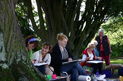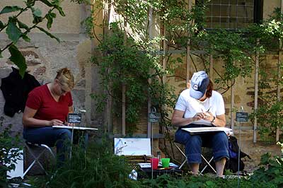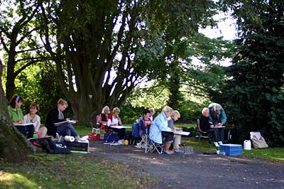 Die Teilnehmer bei ihrer Arbeit im Klosterpark