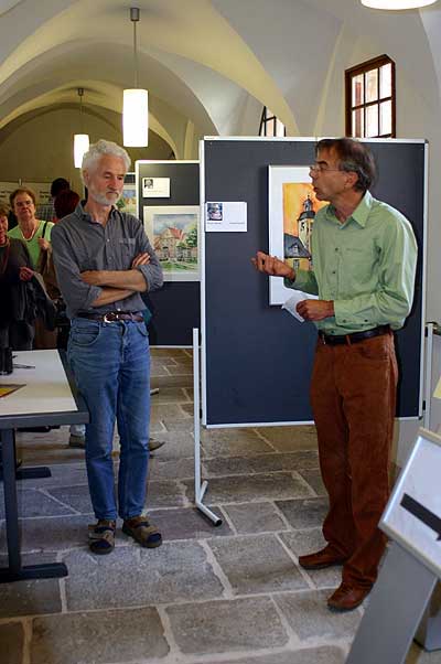 bei der Eröffnung der Präsentation, der während des Workshops entstandenen Werke.